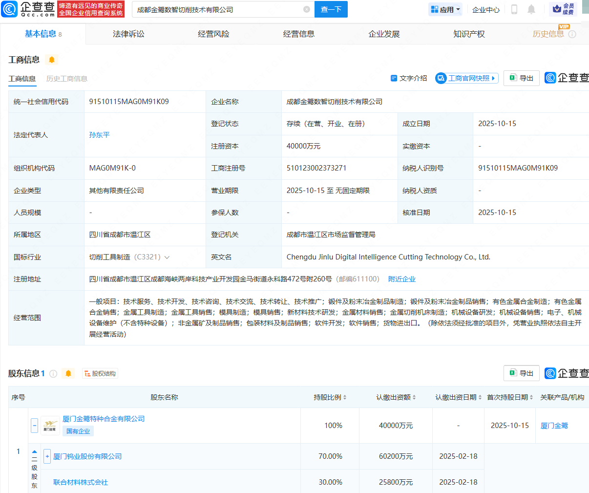 全国股票配资公司排名厦门钨业成立数智切削技术公司,注册资本4亿元
